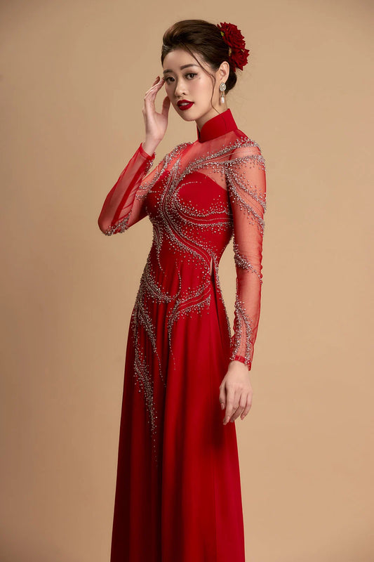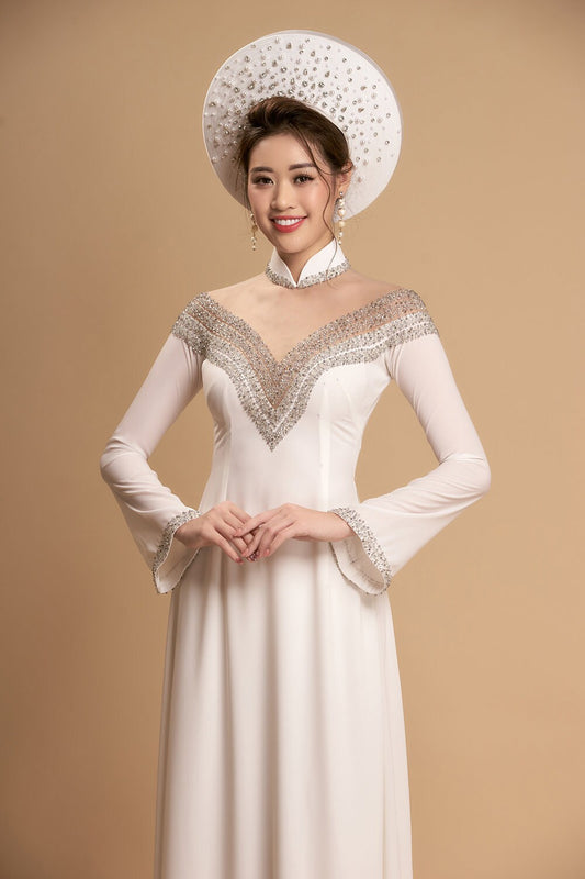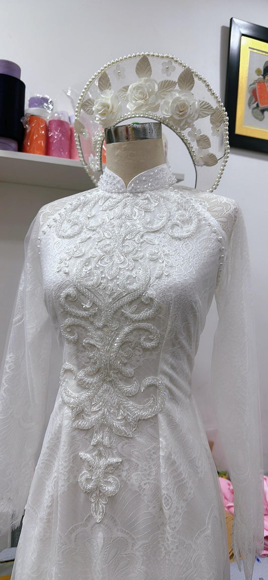 Clear headpiece for Vietnamese ao dai