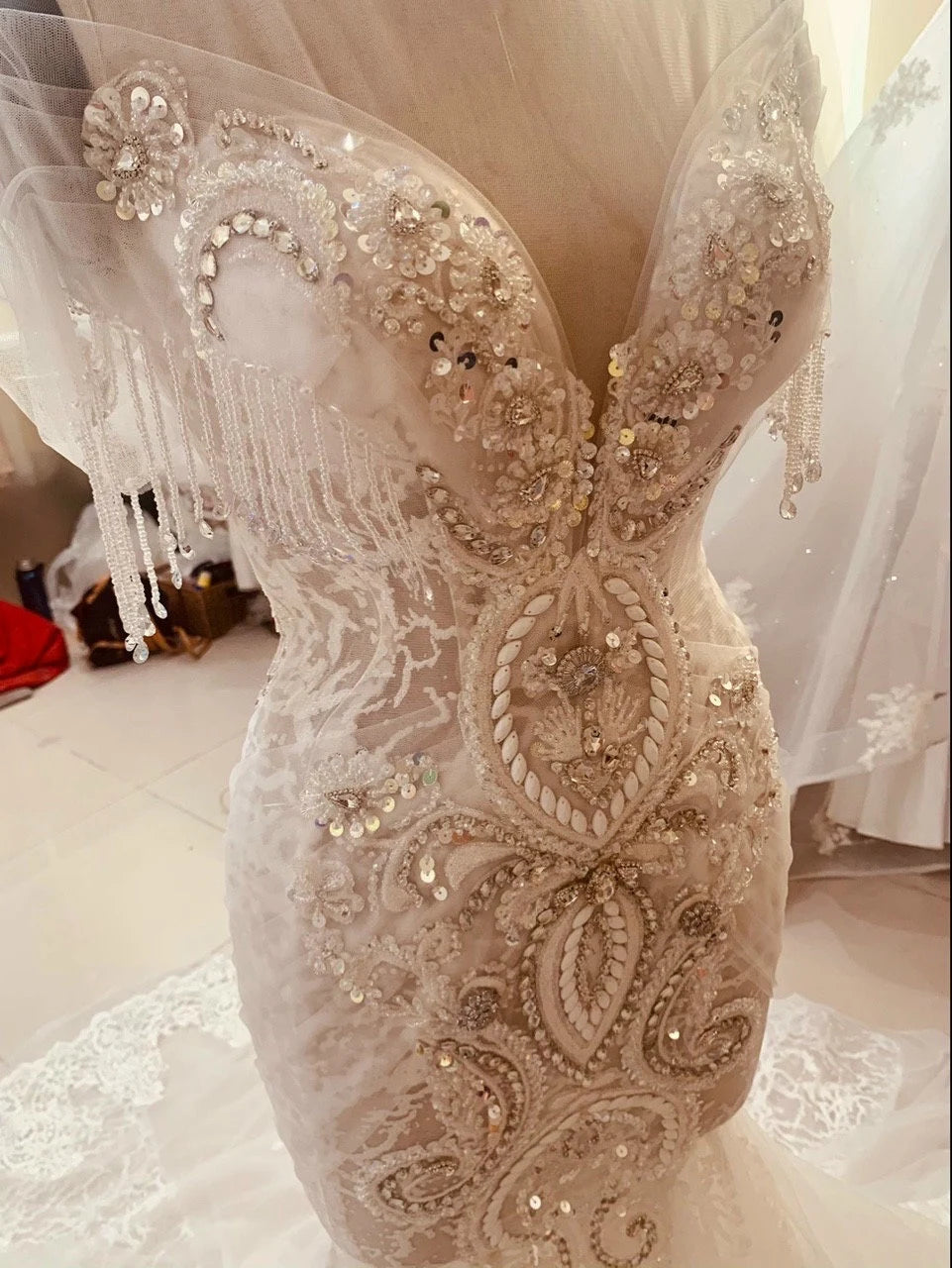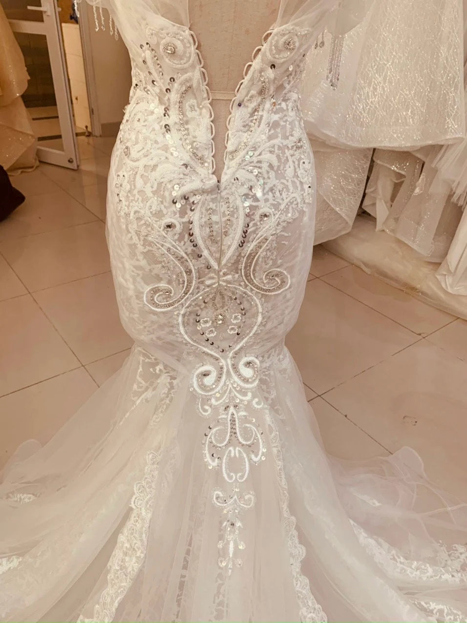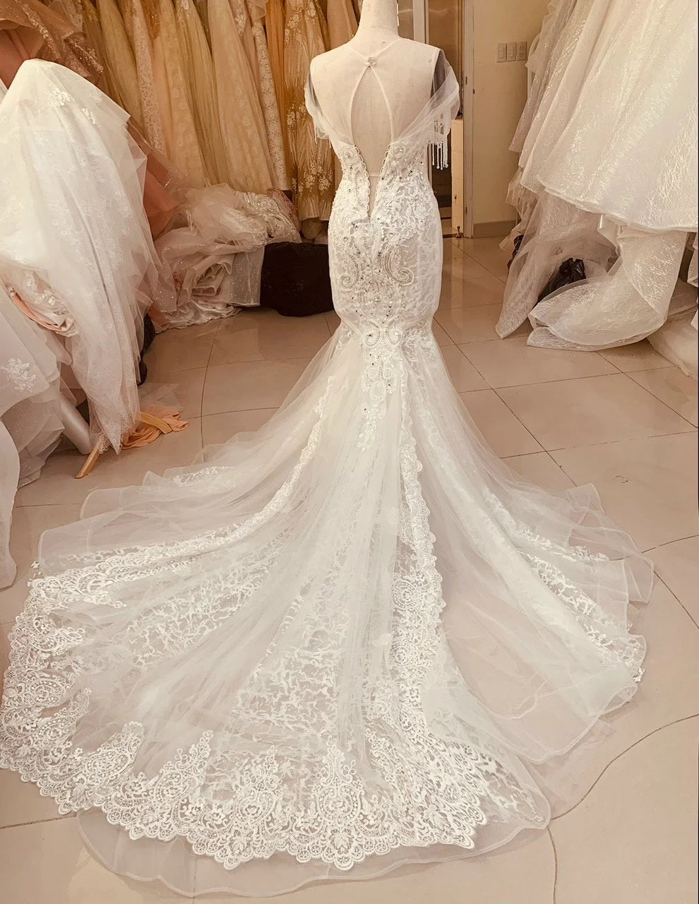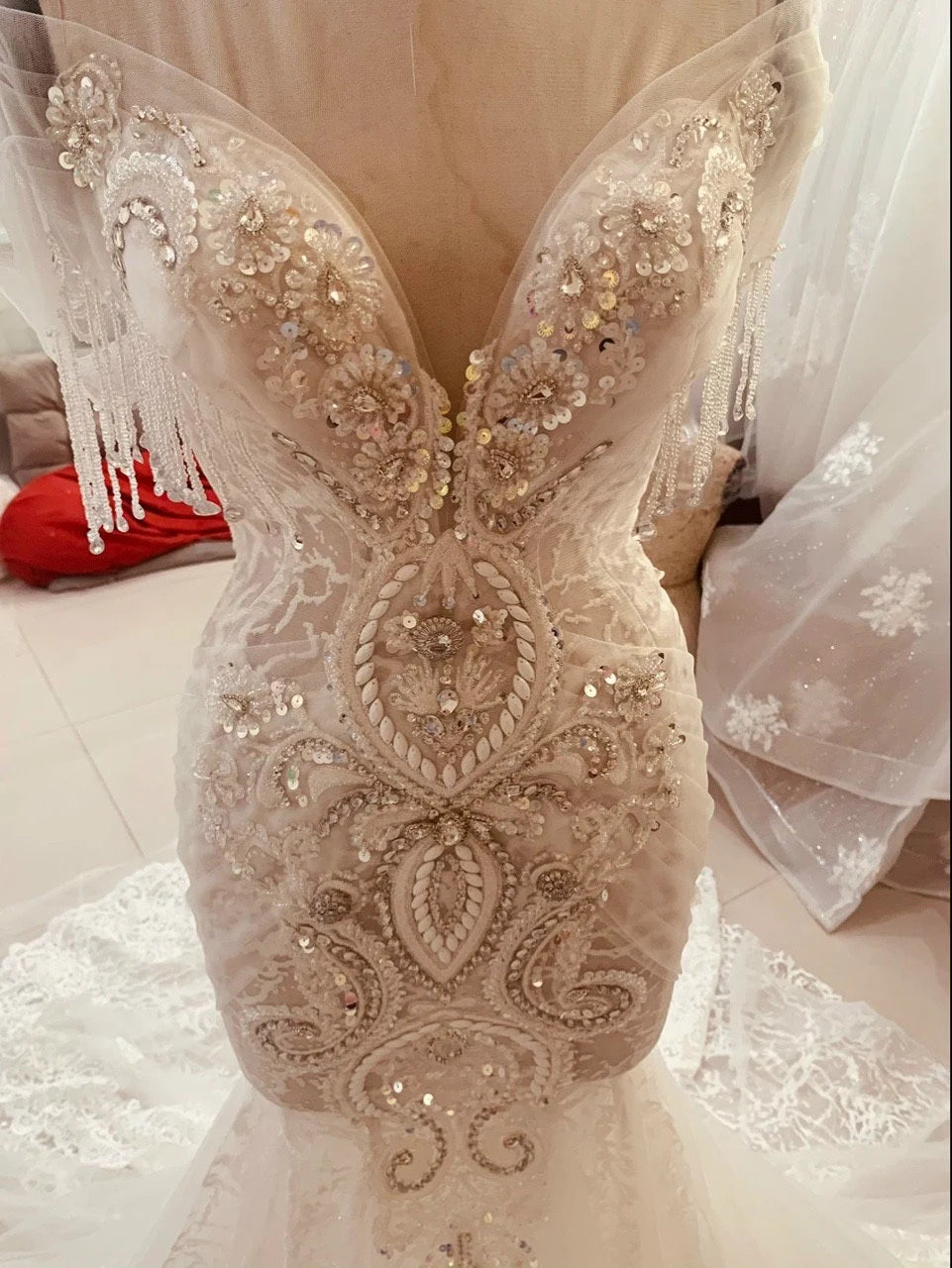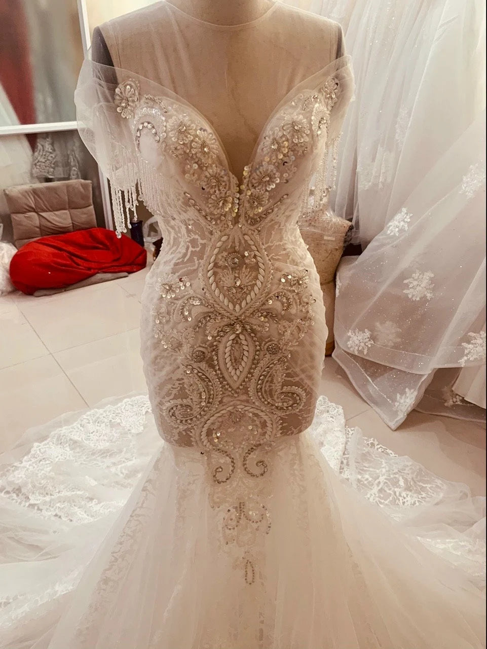 Sophia – Hand-beaded Mermaid Wedding Dress with Lace-up Back and Royal Train